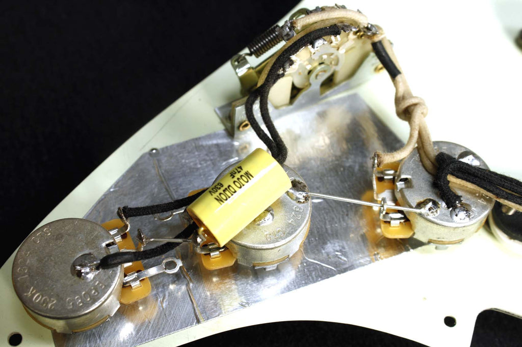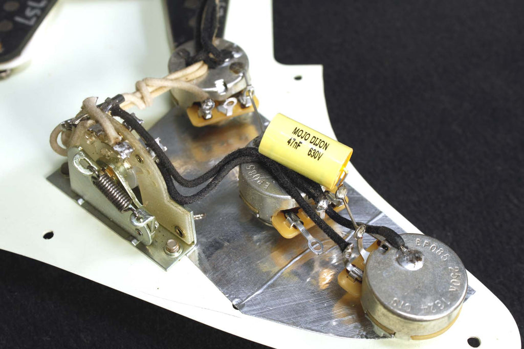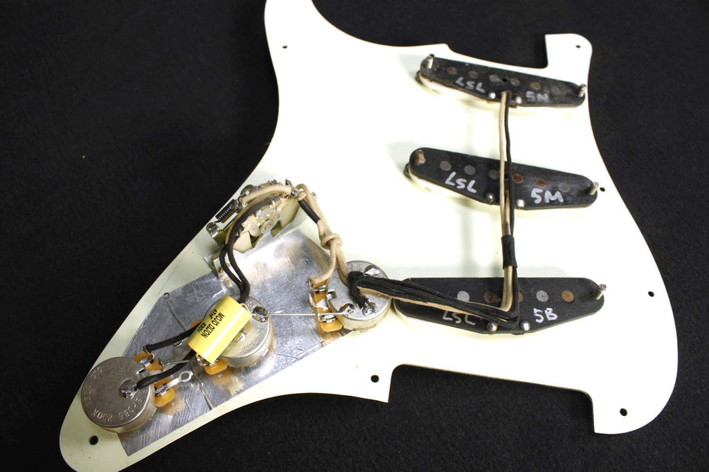 LsL Strat®/Saticoy Pre-Wired Pickguards are beautifully hand-soldered and hand-wired by our skilled artisans, using only the finest vintage-style components, and your choice of LsL single-coil pickup set.